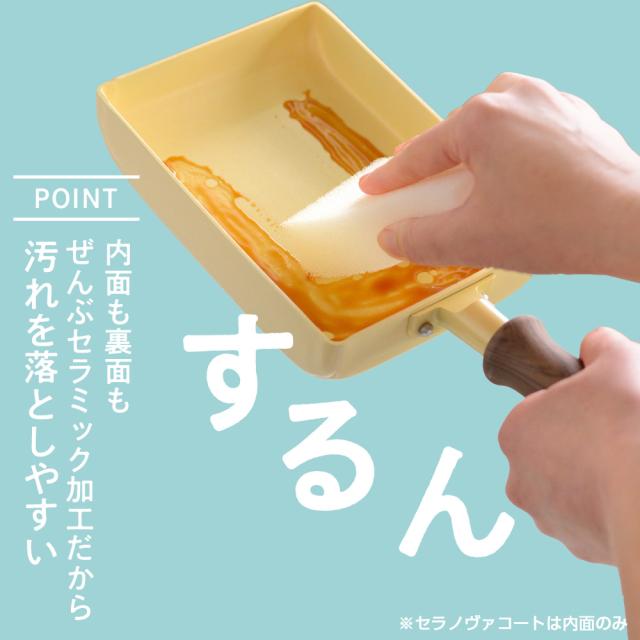こびりつきにくい特殊セラミック加工(セラノヴァコート)により、使いはじめの「するん」が長持ち!