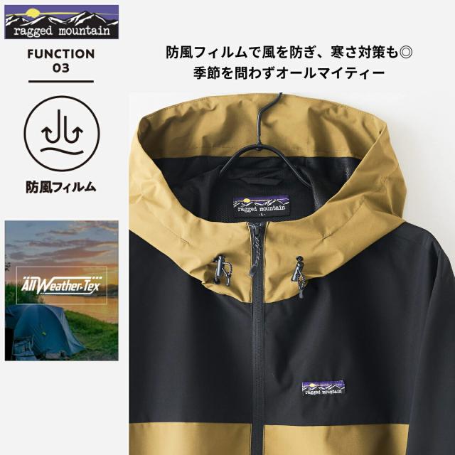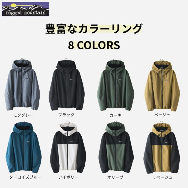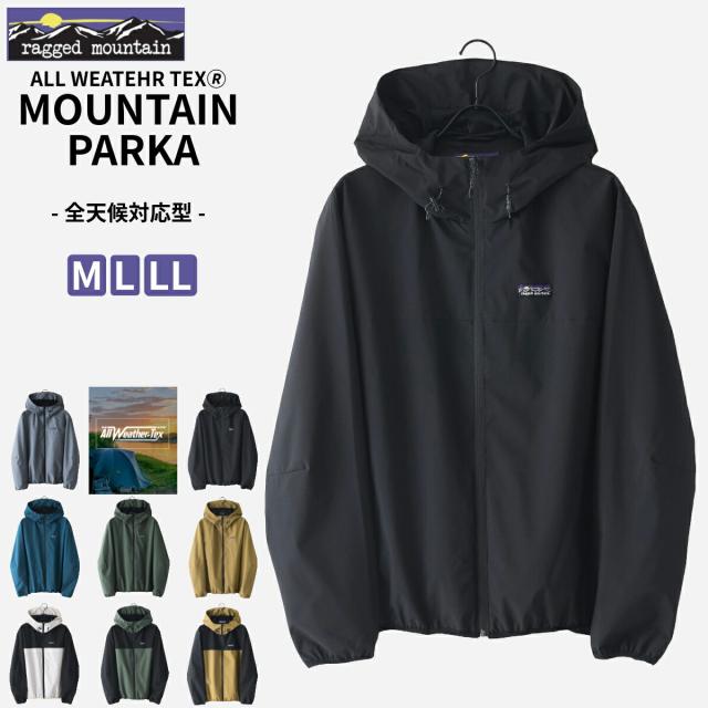 全天候対応型 オールウェザー マウンテンパーカー ウインドブレーカー 撥水 防風 裏メッシュ RAGGED MOUNTAIN メンズ 男女兼用 防寒 ブランド マンパ アウター 雨具 無地 バイカラー ジャンパー M L XL