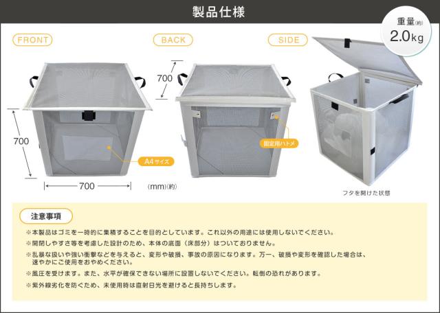 日本製 45L約7袋 カラス ゴミ ボックス ドリームストッカー(340L) 抗菌plus 幅70cm×奥行70cm×高さ70cm 折りたたみ式 [大型便対象商品(一部地域別途送料発生)] ごみストッカー カラスよけ カラス対策 大型 大容量 猫よけ対策 ゴミ箱 屋外 自治会 町内会