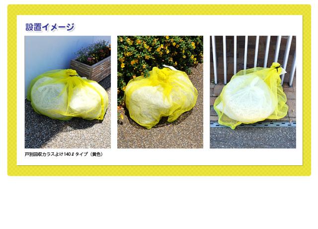 小型 45L約3袋 カラスよけネット 戸別回収向け噂の黄色いカラスよけ 140L 直径95cm×高さ80cm イエロー 戸別収集 一般家庭向け 底重り入り 飛ばされにくい 丈夫 一般家庭向け 自宅 戸建 マンション アパート 賃貸 会社 店舗 管理組合 自治会 町内会 予算消化