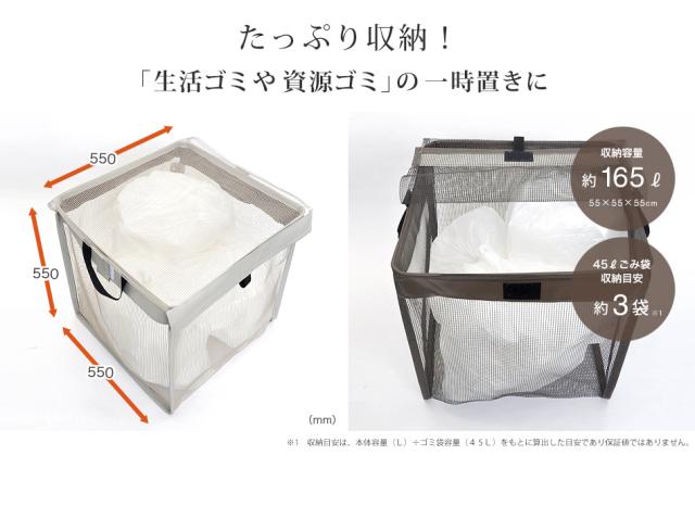 日本製 大型 45L×約3袋 おしゃれ 戸別収集 抗菌ゴミボックス 55cm角(内寸)165L ゴミステーション カラスよけネット ゴミ箱 ゴミネット 屋外 軽量 畳める 一般家庭向け 自宅 戸建て マンション 住居 戸別回収 アパート 賃貸 会社 店舗 管理組合 自治会 町内会 予算消化