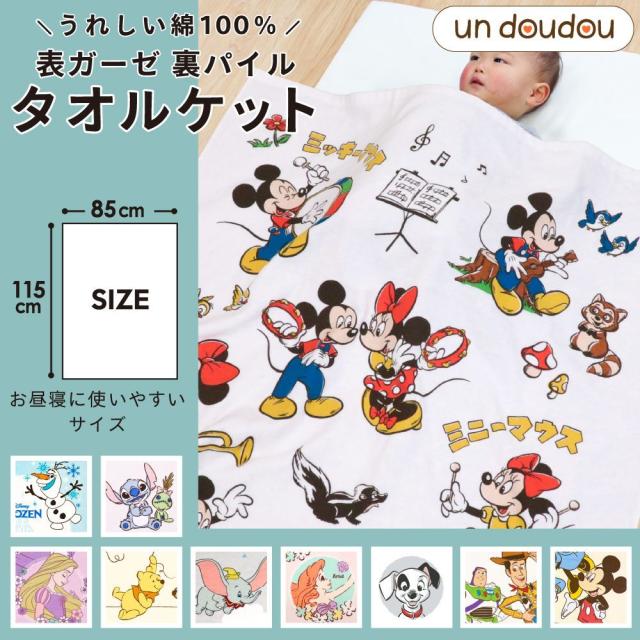 ディズニー タオルケット 85×115cm 綿100% 表ガーゼ ミッキーマウス&ミニーマウス ガーゼタオルケット ベビー用品 新品 キッズ お昼寝ケット 保育園 幼稚園 入園 ホワイト un doudou メール便発送(ポスト投函) NP