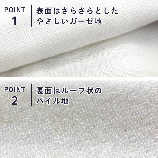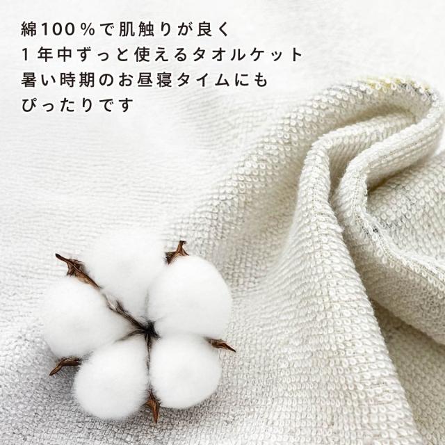 綿100%のタオルケットは、表面はふんわり軽いガーゼ生地、裏面はパイルでふんわりした手触りの良いタオル生地です。