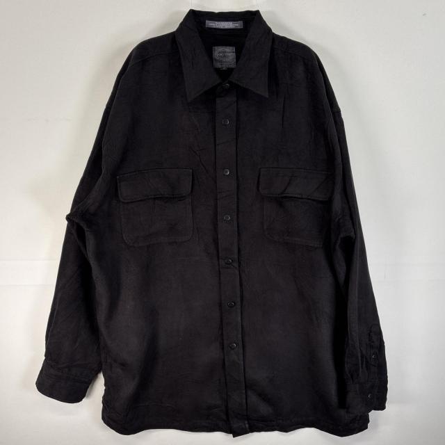 古着 FORSYTH 長袖シャツ 胸ポケ 肉厚 フラップポケ L ブラック 無地 メンズ