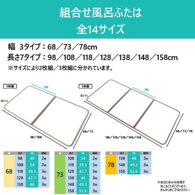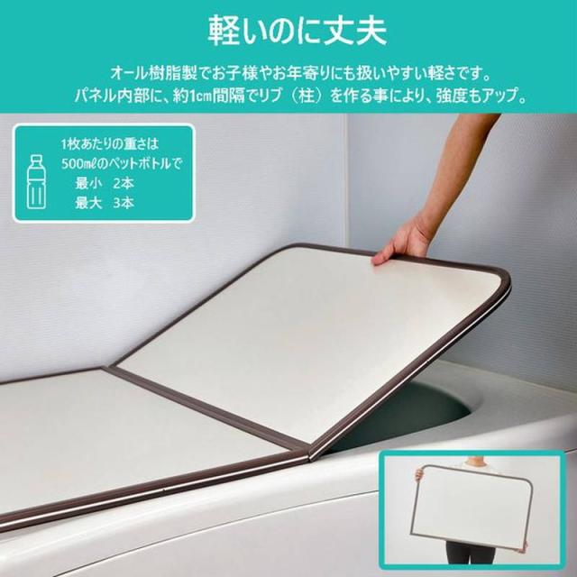 ・風呂ふた1枚あたりの厚みが (約) 15mmと薄く扱いやすい風呂ふたです。