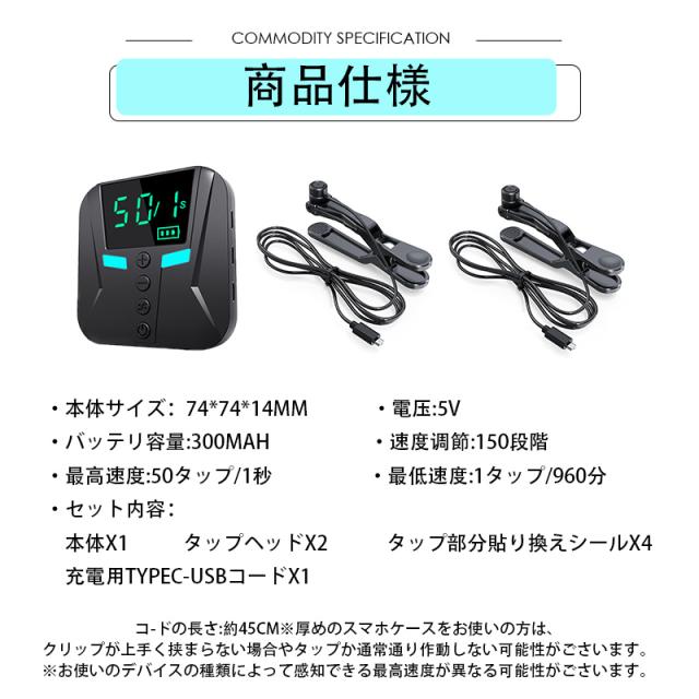 高速連打 自動タップ機 本体1台ヘッド2個セット 連打 自動 タップ スマホ連打器 連続 放置 ゲーム スマホゲー 生放送