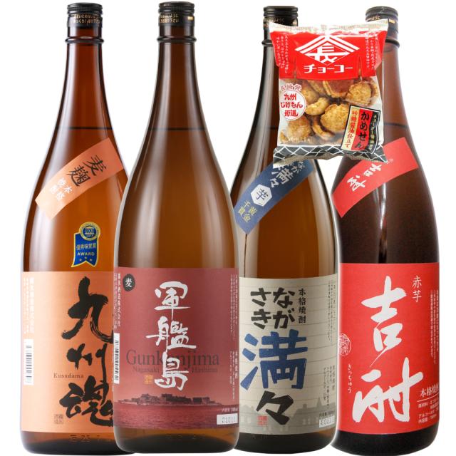 オトク芋麦焼酎10,000円ポッキリ 軍艦島麦/九州魂麦/満々芋/吉酎赤芋/1.8/4本飲み比べ セットのみくらべ今だけかめせん1個付き 50セット限り 送料無料一部地域を除く 福袋