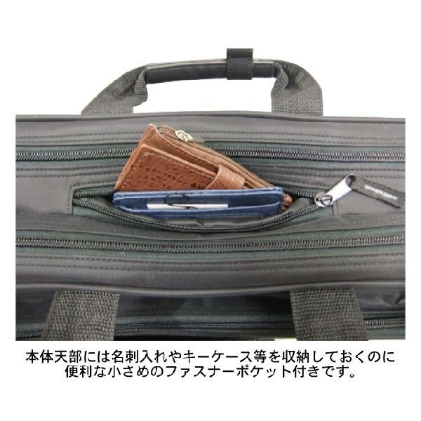 本体天部には名刺入れやキーケース等を収納しておくのに便利な小さめのファスナーポケット付きです。