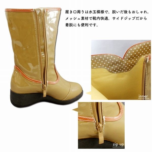 エナメル調レインブーツ