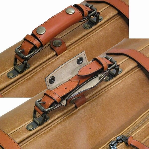 | 兵庫県豊岡市製 職人手作り 本体は白いPVC層の上に色の付いたPVC層を重ね、折れ曲がった凸部分が白く変化します。 雨や雪で汚れてもお手入れが簡単です。 開口部に枠が仕込まれたダレスタイプのボストンバッグで、限られた職場でしか作れなくなってきています。 ダレスタイプの良い所はカパッと開いた状態を保つ事が出来る所で、荷物の出し入れがしやすいです。 開閉は、2本のベルトに取り付けられている差込式の錠前をそれぞれ外し、口枠に取り付けられたホックを外して行います。 内部は仕切りが無く、荷物が詰めやすくなっています。 背面側にファスナーポケットが1つ取り付けられていますので、小物が紛れてしまう事もありません。 本体前面の大きなファスナーポケットはマチ幅が6cmあるので、サブルームとして使用可。 本体底面に金属製の底鋲が4つついています。 ハンドル部分は本革製で、使うほどに手になじみ3段階調整できます デザインのアクセントにもなっている2本のベルトや、ファスナーの引手なども本革製です。 ショルダーベルト付なので、肩掛けもできます。 |