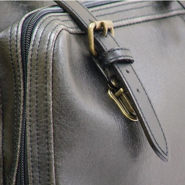 デザインのアクセントにもなっている2本のベルトや、ファスナーの引手なども本革製です。