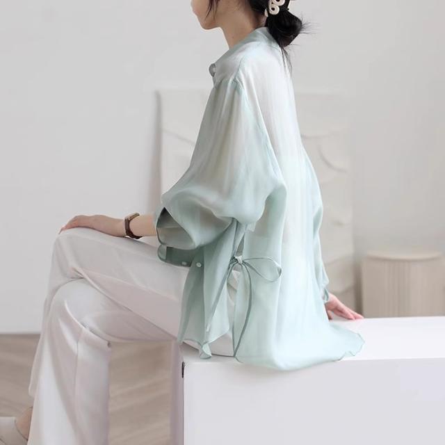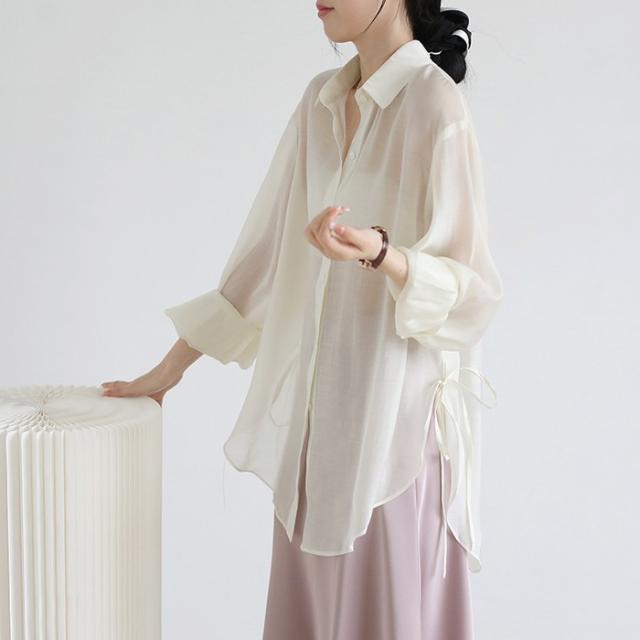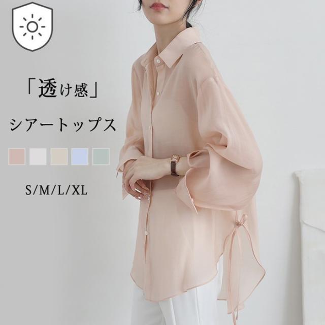シアートップス シアーシャツ レディース 長袖 透け感 重ね着 ショート丈 大きいサイズ 日焼け止 前開き オーバーサイズ シンプル カジュアル おしゃれ ゆったり 日焼け対策 紫外線対策 羽織 海 冷房対策 ホワイト ピンク グレー グリーン オフホワイト