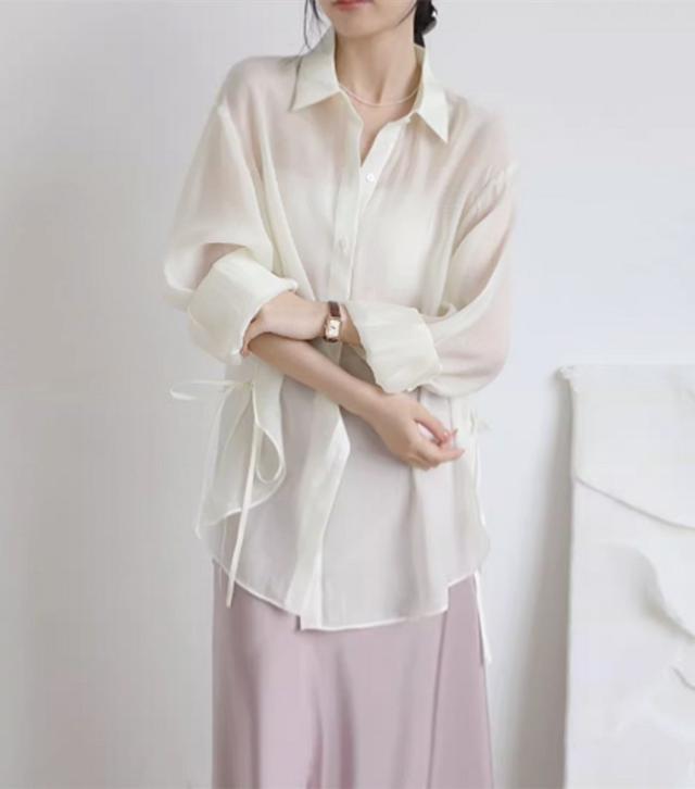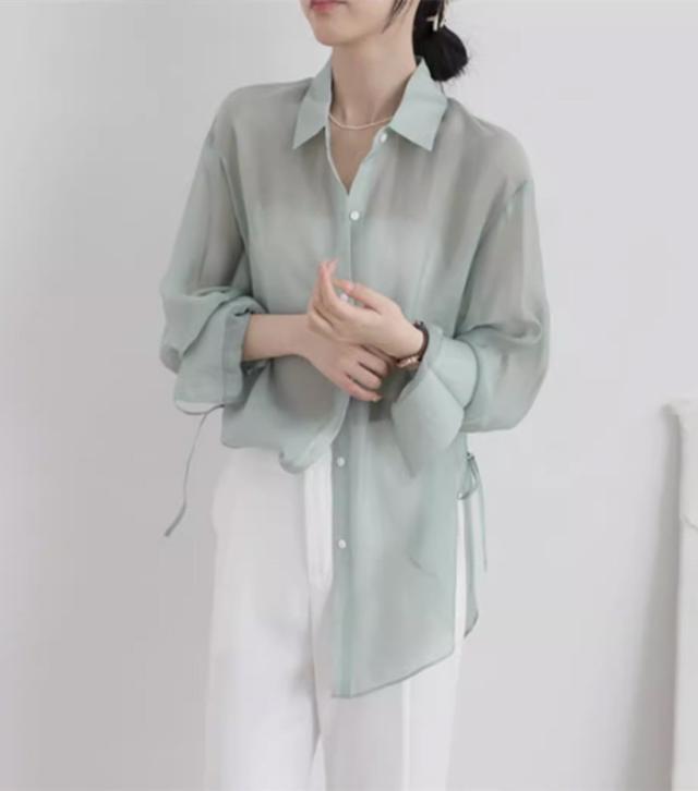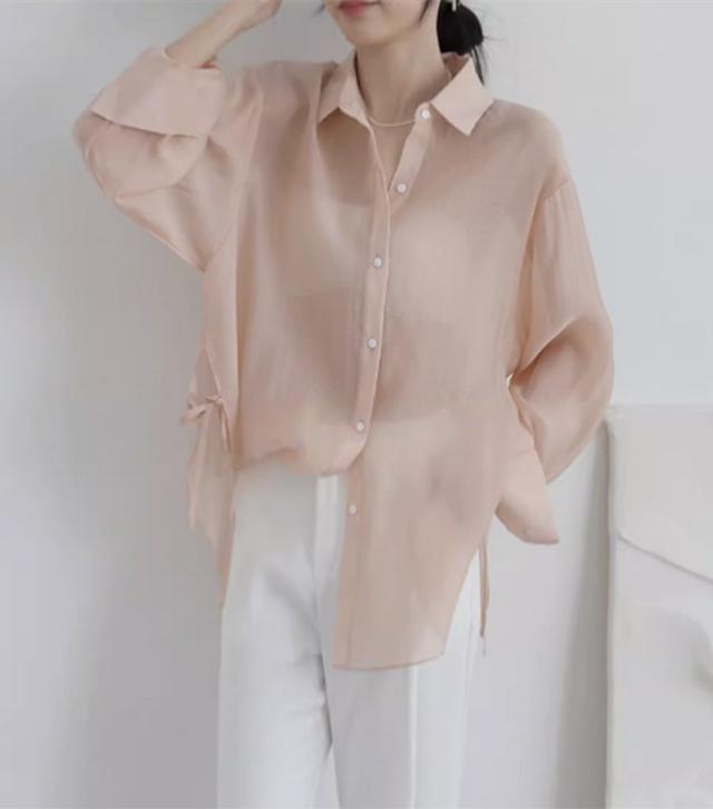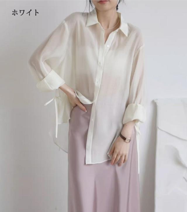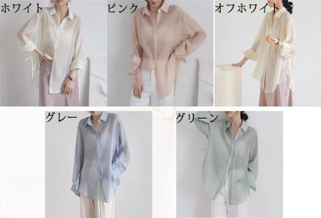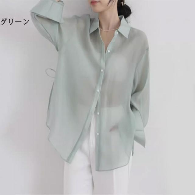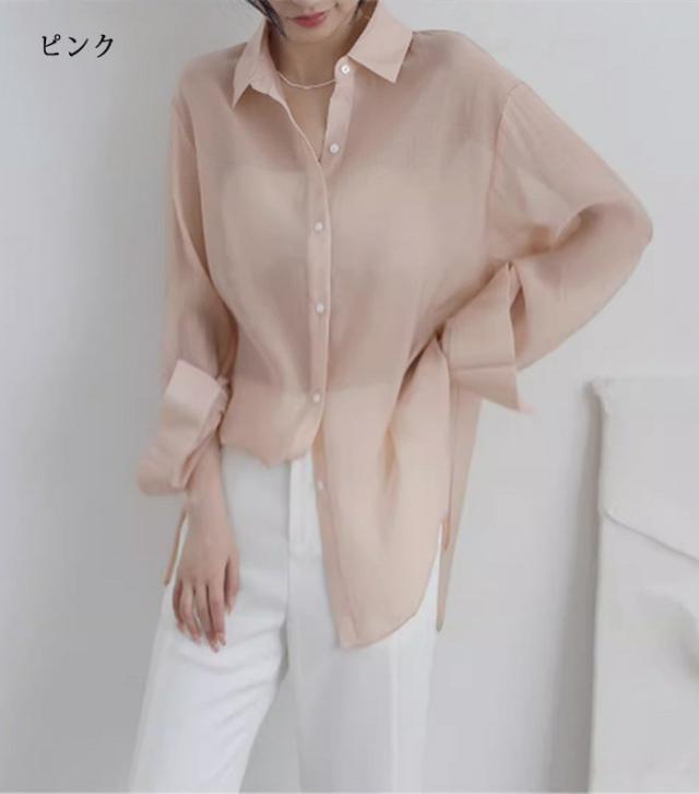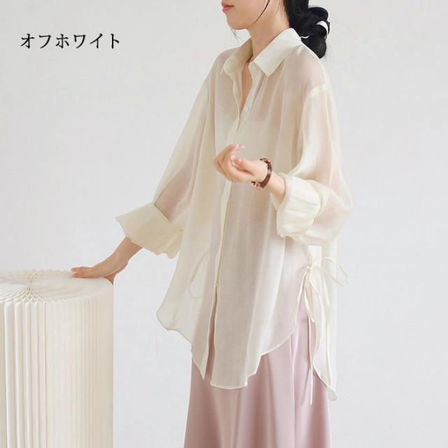 シアートップス シアーシャツ レディース 長袖 透け感 重ね着 ショート丈 大きいサイズ 日焼け止 前開き オーバーサイズ シンプル カジュアル おしゃれ ゆったり 日焼け対策 紫外線対策 羽織 海 冷房対策 ホワイト ピンク グレー グリーン オフホワイトdg118zbzbm5