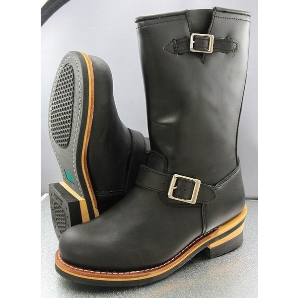 | 本格エンジニアブーツ ブラック 素材の一部に本革使用で(筒部、踵部位は合成皮革)信頼のグッドイヤー製法です。 |