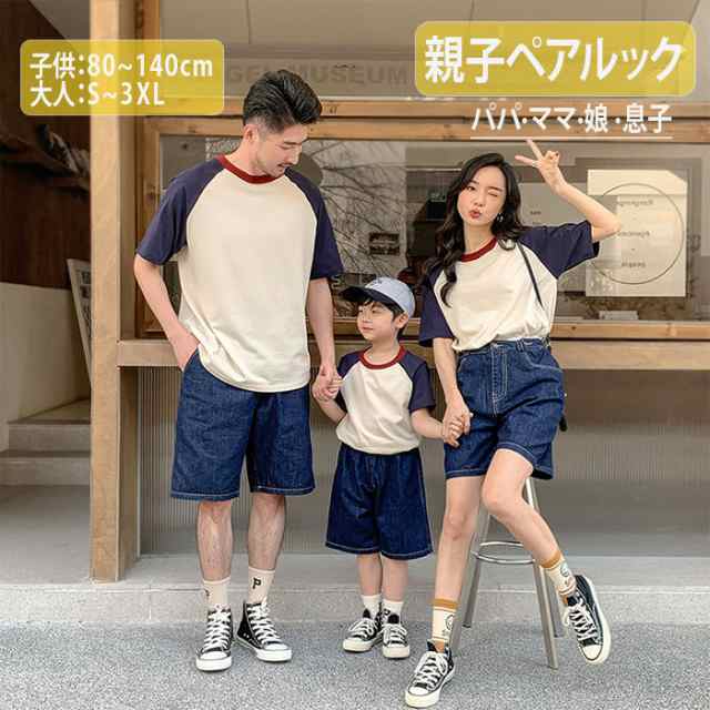 Tシャツ 親子コーデ ペアルック 親子ペア 親子揃い 夏 半袖 トップス 綿 カジュアル かわいい パパ ママ 娘 息子 双子 兄弟 姉妹 夫婦