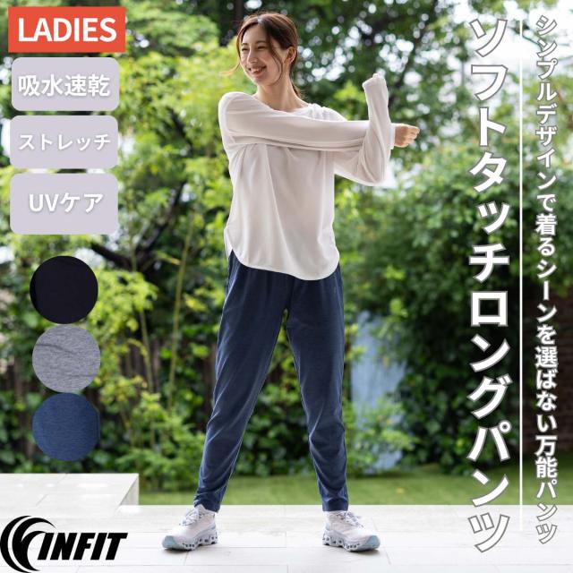 インフィット INFIT ソフトタッチロングパンツ レディース オールシーズン パンツ ブラック 黒 グレー ネイビー 紺 スポーツ フィットネス ジム ジョギング UVカット ストレッチ 吸汗速乾 5SHL2013