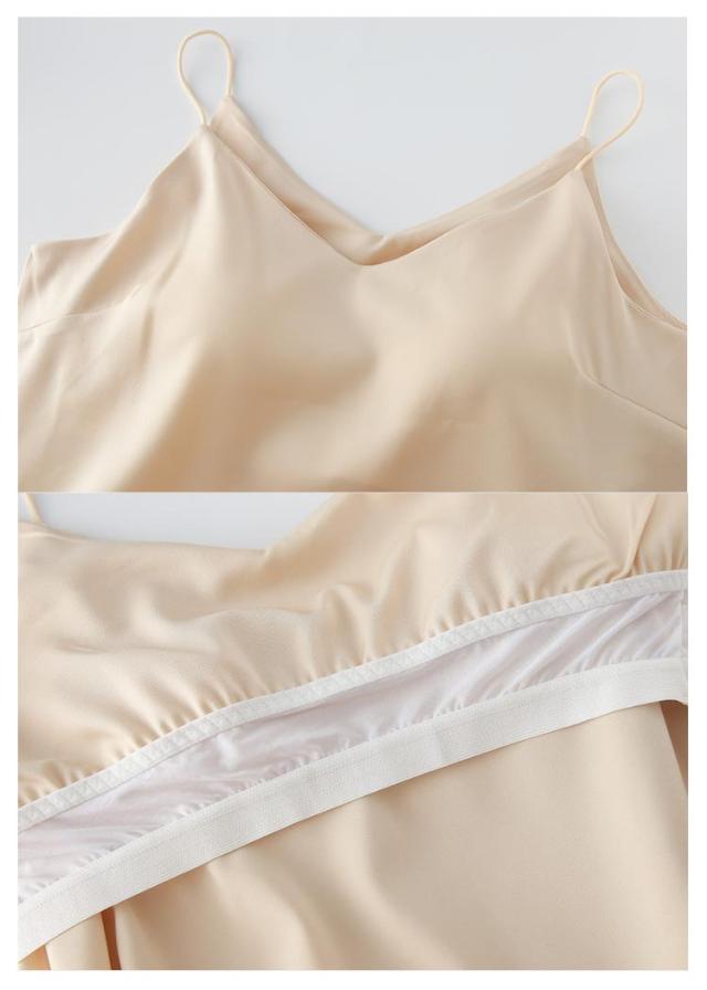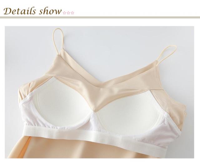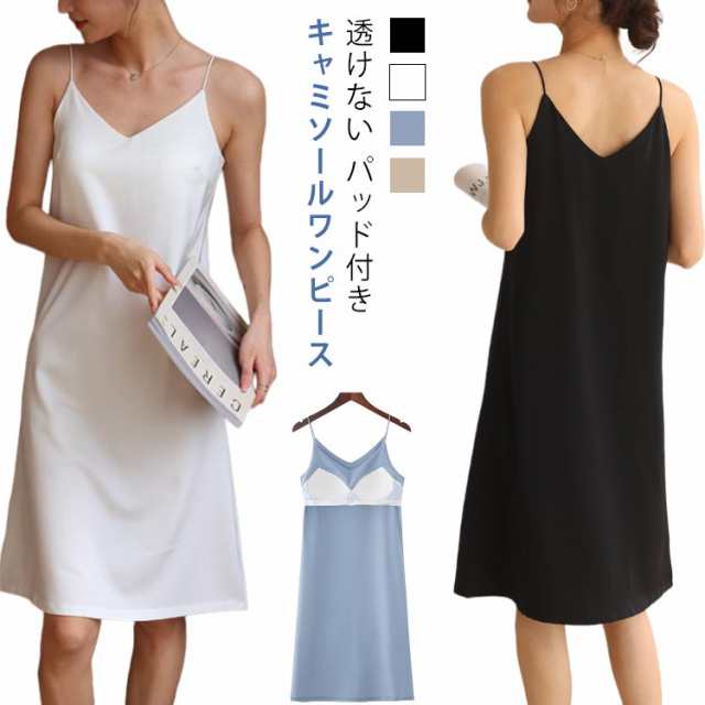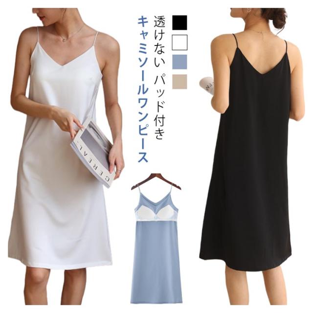 着痩せ カップ付き 女性 パッド付き パジャマ シンプル サテンキャミソール ロング 無地 ルームウェア キャミワンピ ワンピース レディース 透けない 夏 ネグリジェ 部屋着 寝間着 Aライン ストレッチ 通気性 カットソー 涼しい かわいい 吸水性 キャミソール