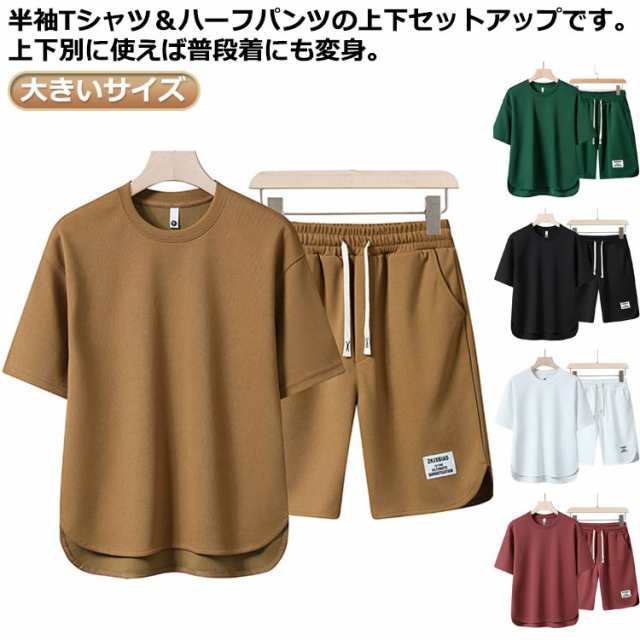 夏服 メンズ セットアップ 半袖 Tシャツ ショートパンツ 2点セット 大きいサイズ ゆったり おしゃれ スウェット ジャージ 上下セット クルーネック tシャツ ハーフパンツ 短パン 無地 シンプル カジュアル スポーツウェア ランニング ルームウェア 部屋着 夏 ユニセックス