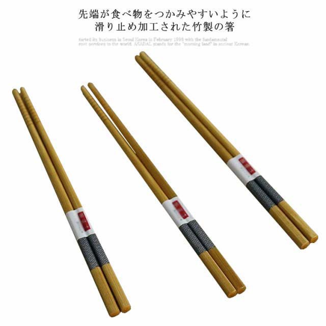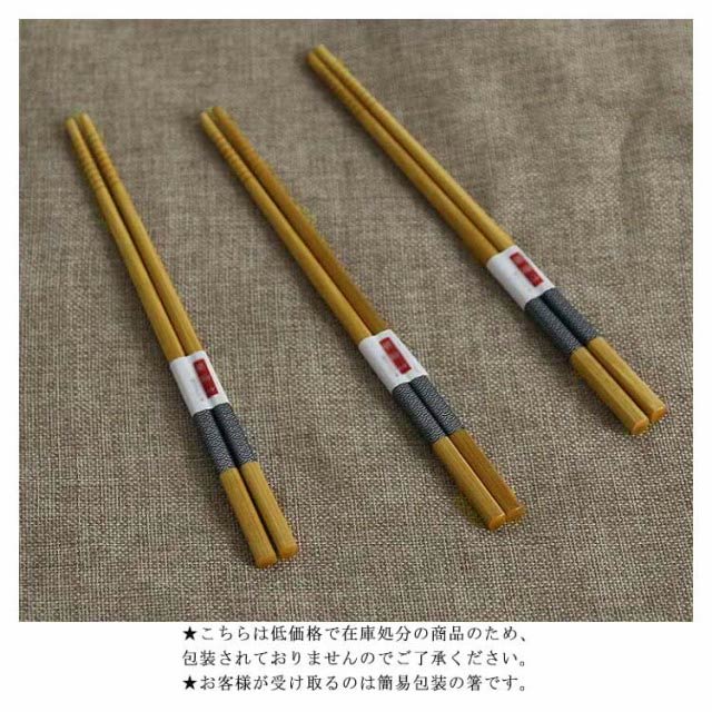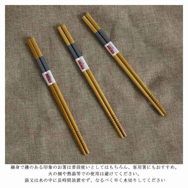 | 先端が食べ物をつかみやすいように滑り止め加工された竹製の箸。 毎日使うものだから、軽くて持ちやすいのもうれしいポイント! 和食によく合う落ち着いた色合いでモダンにまとめられつつも、存在感を残した「和心」溢れるお箸。 細身で趣のある印象のお箸は普段使いとしてはもちろん、客用箸にもおすすめ。 火の側や熱湯等での使用は避けてください。湯又は水の中に長時間放置せず、なるべく早く水切りしてください。 ★こちらは低価格で在庫処分の商品のため、包装されておりませんのでご了承ください。 ★お客様が受け取るのは簡易包装の箸です。 | |