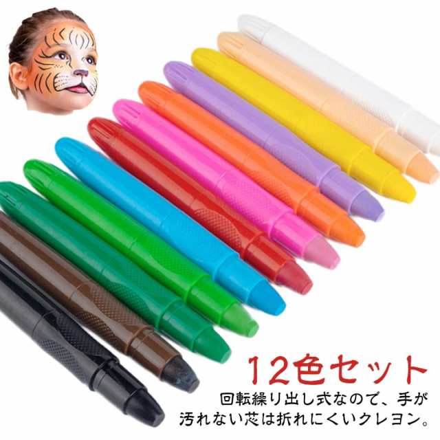 クレヨン 12色セット 手が汚れない 洗える 水性 回転 繰り出し式 安全無毒 カラーペン ウォッシャブル 落ちやすい フェイスペイントスティック 顔ペン ボディペイント 絵の具 塗りやすい 折れない らくがき 塗り絵 ハロウイン クリスマス コスプレ 仮装 祭り スポーツ観戦