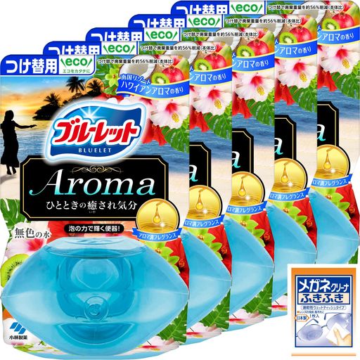 【まとめ買い】液体ブルーレットおくだけ アロマ トイレタンク芳香洗浄剤 南国リゾートハワイアンアロマ 詰め替え用 70ML×5個 メガネクリーナおまけ付 小林製薬