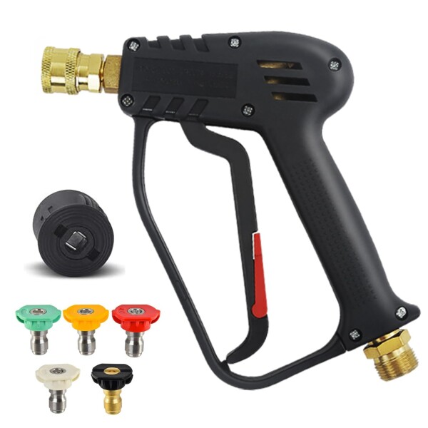 DERASL ケルヒャー用 ショートガン 高圧洗浄ショートガン M22 14mm フィッティング ノズルチップ5個 4000 PSI(約28 MPa) ノズル付属 クイックコネクトアダプター Karcher カークリーニングに