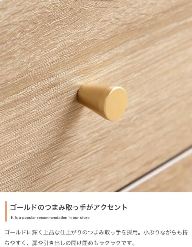 リアルな木目調とゴールドの取っ手が高級感を演出。