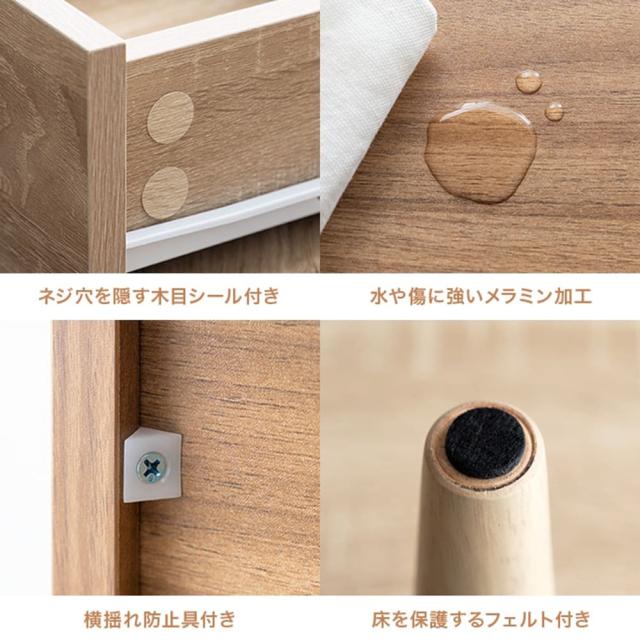 耐荷重: 天板 約25kg、扉収納底板 約5kg、可動棚 約3kg、オープン収納底板 約15kg、引き出し (各)約2kg