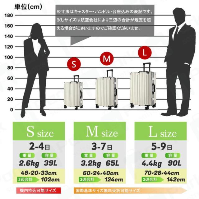 スーツケース キャリーバッグ キャリーケース 機内持ち込み アルミフレーム 大型 軽量 頑丈 旅行 出張 Sサイズ M フレームタイプ 1年保証