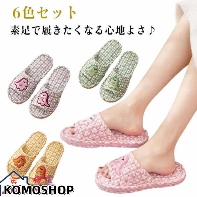 スリッパ 洗える スリッパ 疲れない 滑り止め 室内履き 前開き 室内 ルームスリッパ 6色セット レディース 蒸れない メンズ 恐竜柄 家族 来客用 綿 コットン 軽い チェック柄 オールシーズン 避難所スリッパ