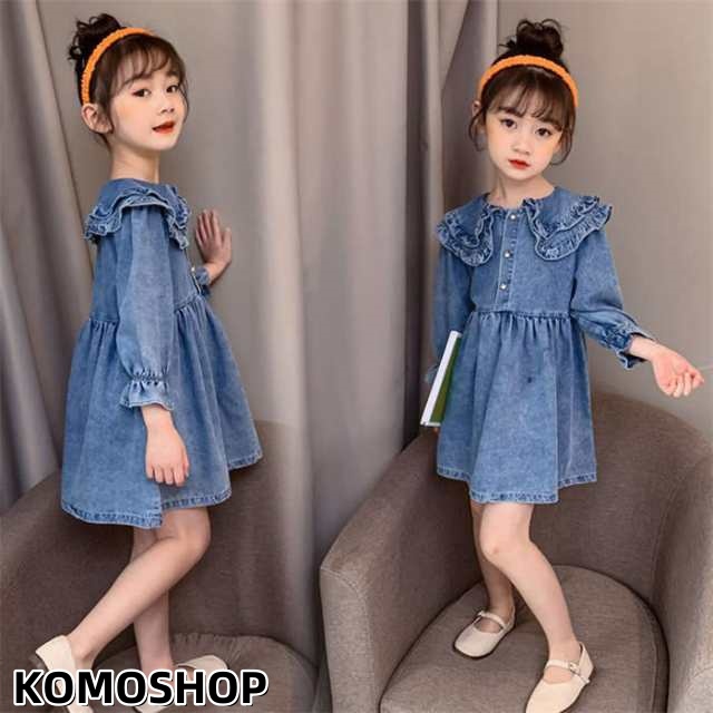 キッズワンピース 女の子 デニムワンピース 子供ワンピース 長袖 韓国子供服 春 秋 ワンピース デニム おしゃれ 子供服 ジュニア服