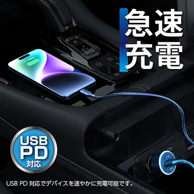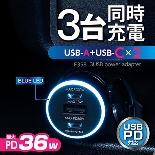 USBポート USBソケット 増設 DC12/24V車対 ブルーLED付 2A PD30W 最大54W 3台同時充電 セイワ F358