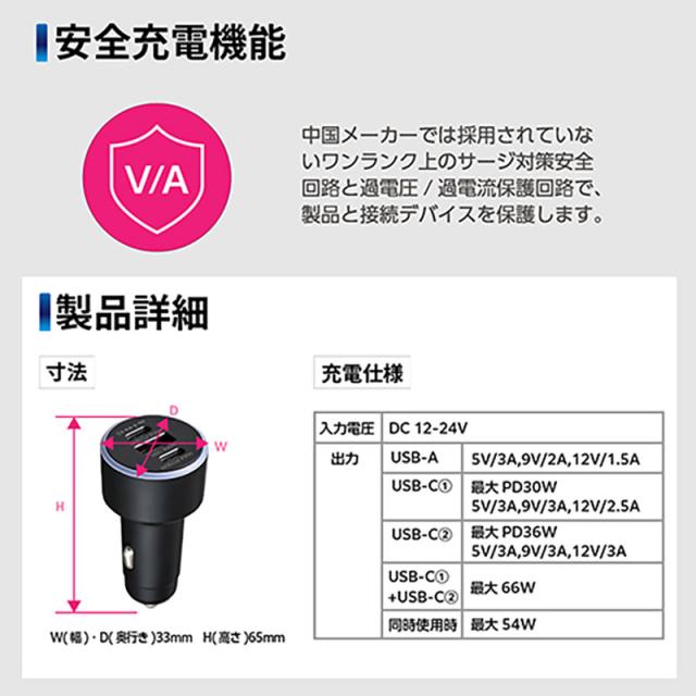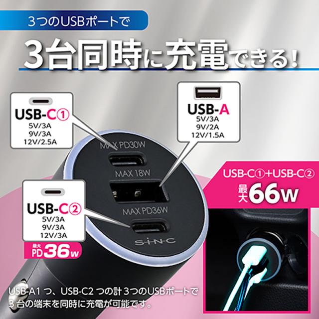●USB(USB-A、USB-C)ポートを3口搭載したソケットです。*USB-C[1] 最大出力PD30W、USB-C[2] 最大出力PD36W、USB-A最大出力18W
