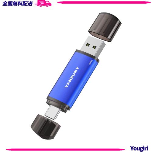 ◆商品名:Vansuny USBメモリ 128GB Type C 2in1 OTG USB 2.0 + USB Cメモリ タイプC 128ギガ (青)