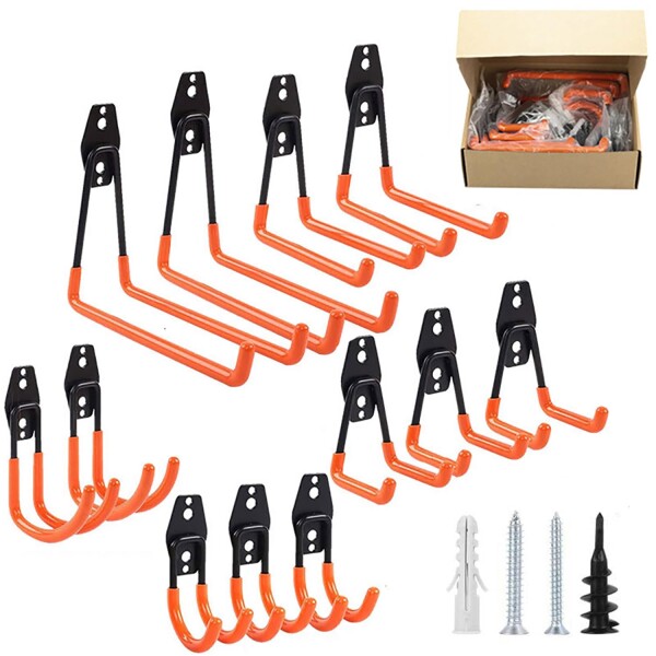 ガレージフック、12パックガレージ収納フックとハンガー、頑丈な壁掛けガレージオーガナイザー、はしご、自転車、ホースなどの道具収納 (オレンジ)
