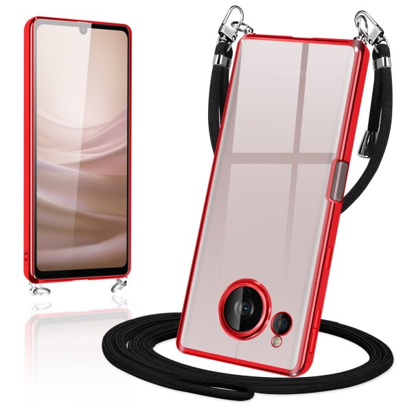 AQUOS sense7 Plus ケース クリア ショルダー カバー スマホケース 透明 TPU 肩掛け 首掛け 斜めかけケース 薄型 耐衝撃 メッキ加工 TPUバンパー(レッド)