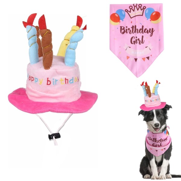 Kingsie 犬 誕生日帽子 バンダナ 2個セット 可愛い ろうそく ケーキ型ハット かぶりもの よだれかけ 写真撮影 バースデー お誕生日 パーティー 変身 コスプレ コスチューム ペット用品 (ピ