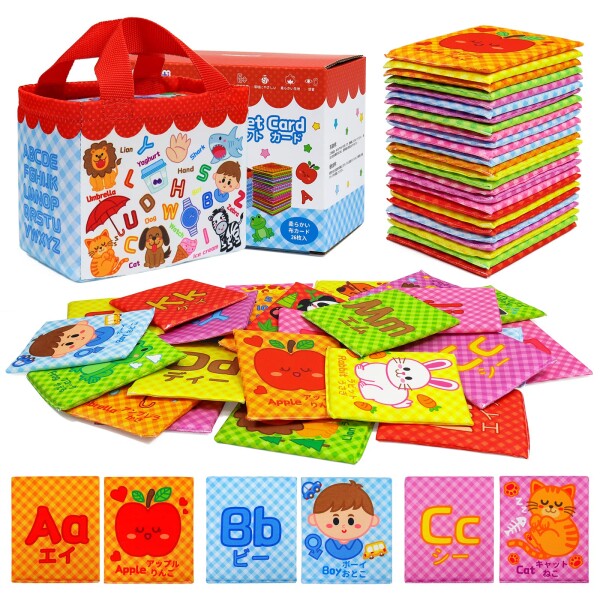 Dr.Rapeti 26枚入ソフトアルファベットカード 布カード 日本語 英語 二ヶ国語 収納袋付き 洗える お風呂に入れる 早期学習おもちゃ 単語学習 赤ちゃん 幼児 子供用 ABCアルファベットカード