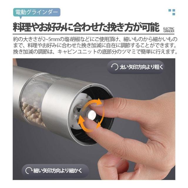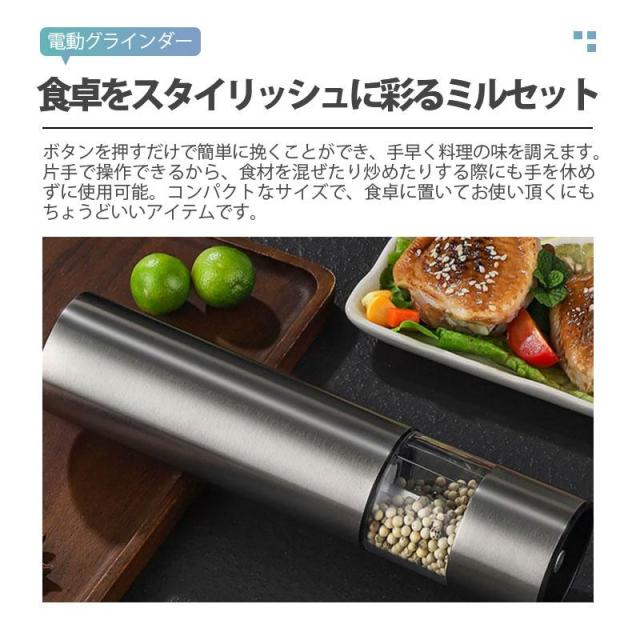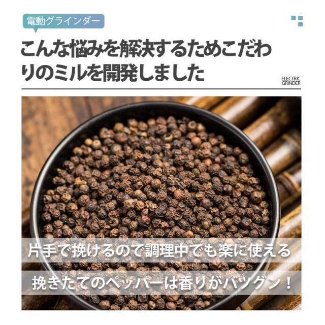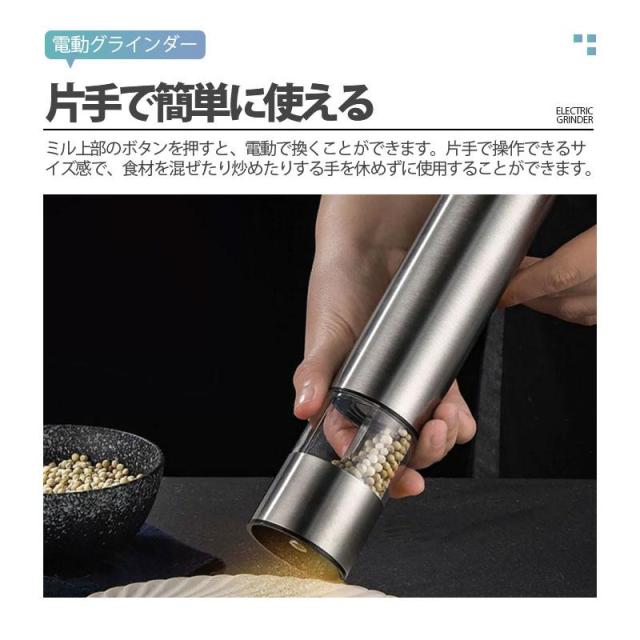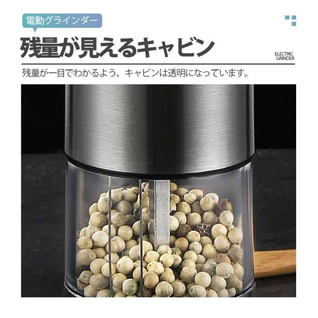 電動ミル ペッパーミル 電動 電動ミル ソルト&ペッパー 粗さ調節可能 ソルトミル 岩塩 ペッパー 胡椒 スパイスミル 片手操作 料理器具
