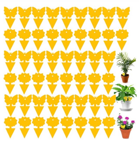※1枚あたり);色:黄色;枚数: 25枚蝶型 25枚花型 害虫捕獲粘着紙は環境にやさしい素材で作られており。物理的な方法で虫を捕殺ので、無臭、無毒、空気には汚れず、安全に使用していただけ、人やペットにやさしいです。