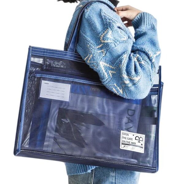 | 商品名 | 手提げバッグ 透明 エンジニアバッグ A3 ファイルバッグ メッシュ ファスナー付き メッシュ 大容量 無地 丈夫 軽量 帯電防止 仕事用 ビジネス クリアバッグ 通学 通勤 文房具 オフィス用 |