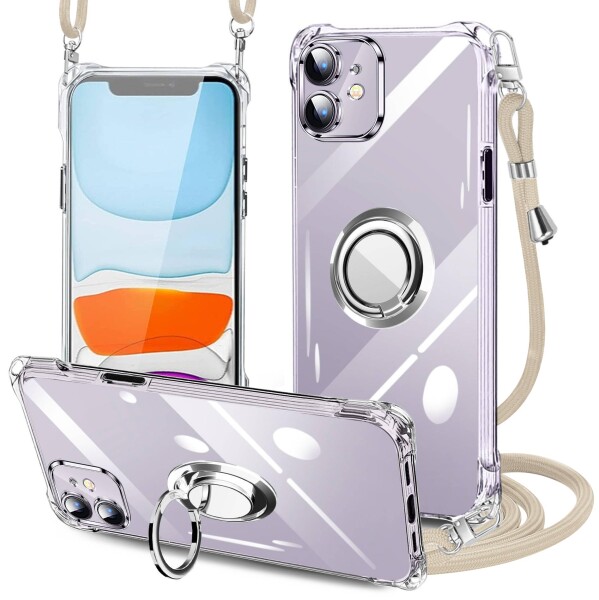 PAILAIMEN iPhone 11 ケース クリア ネック リング付き ショルダー 耐衝撃 対応 アイフォン11 ケース 肩掛け 斜めかけ 縄掛けケース 透明 TPU 携帯ケース 薄型 軽量 紐付き 斜めがけ 織りネック