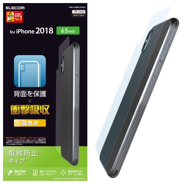 iPhone2018/6.5インチ用の背面を守り、指紋・皮脂が付きにくく、残った場合も簡単に拭き取れる指紋防止タイプの背面フィルムです。