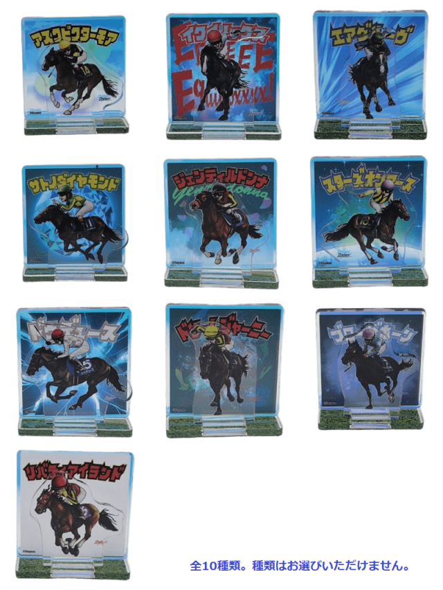 種類:全10種(アスクビクターモア、イクイノックス、エアグルーヴ、サトノダイヤモンド、ジェンティルドンナ、スターズオンアース、ドウデュース、ドリームジャーニー、ブローザホーン、リバティアイランド)