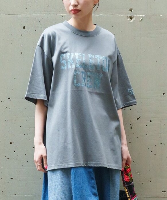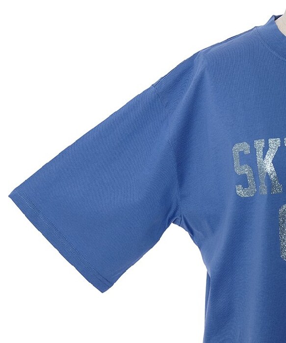 キラキラなグリッタープリントがアクセントになった半袖Tシャツです