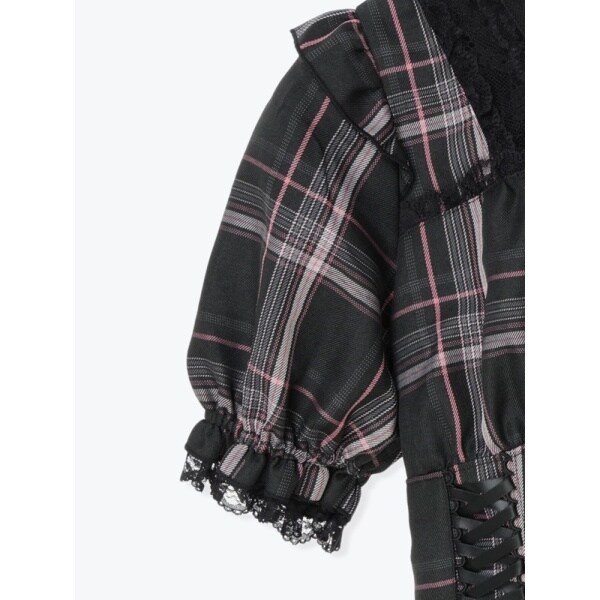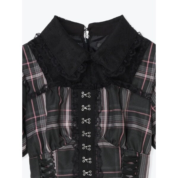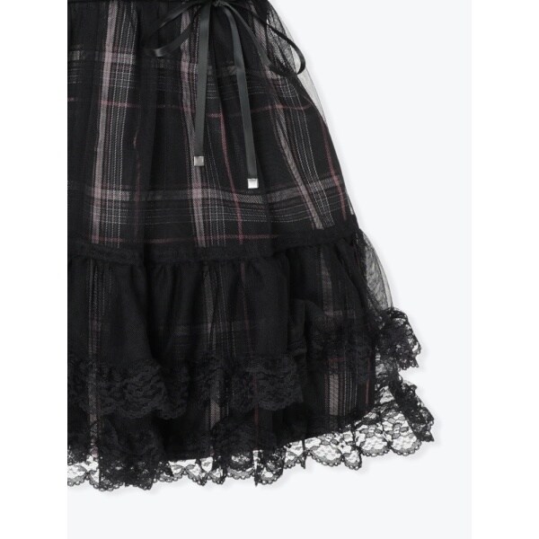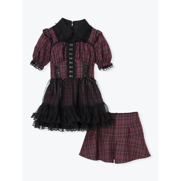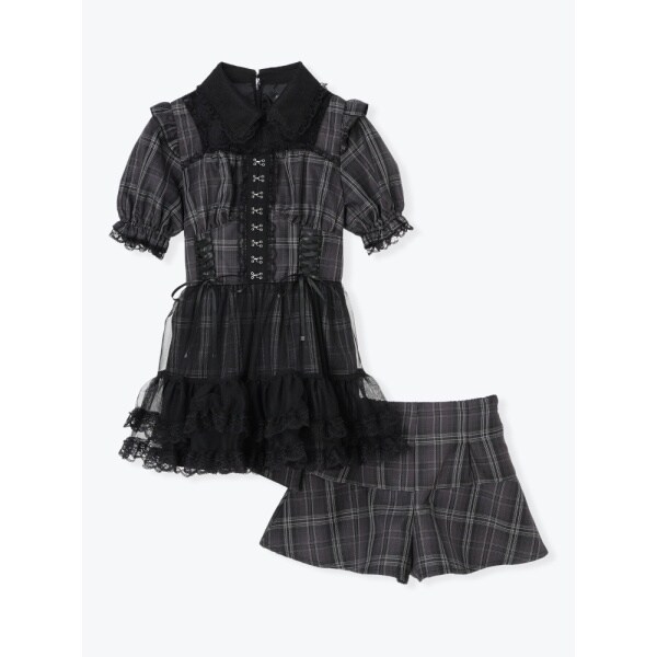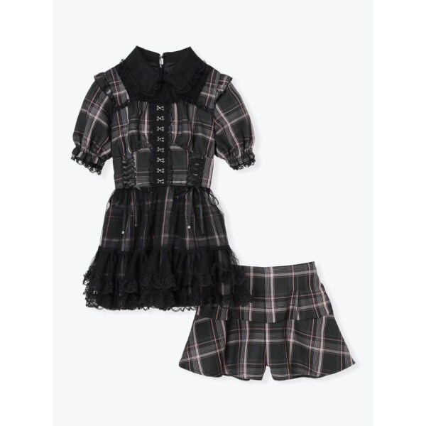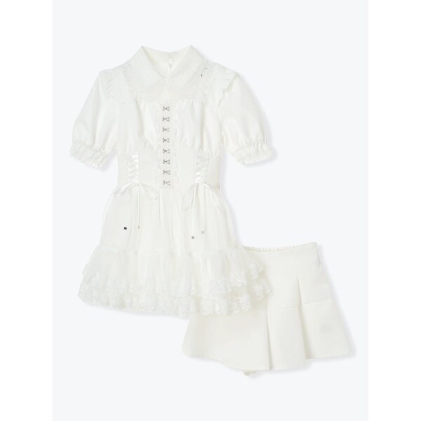コルセットのようなレースアップとふんわり重ねたチュールが可愛いセットアップです。