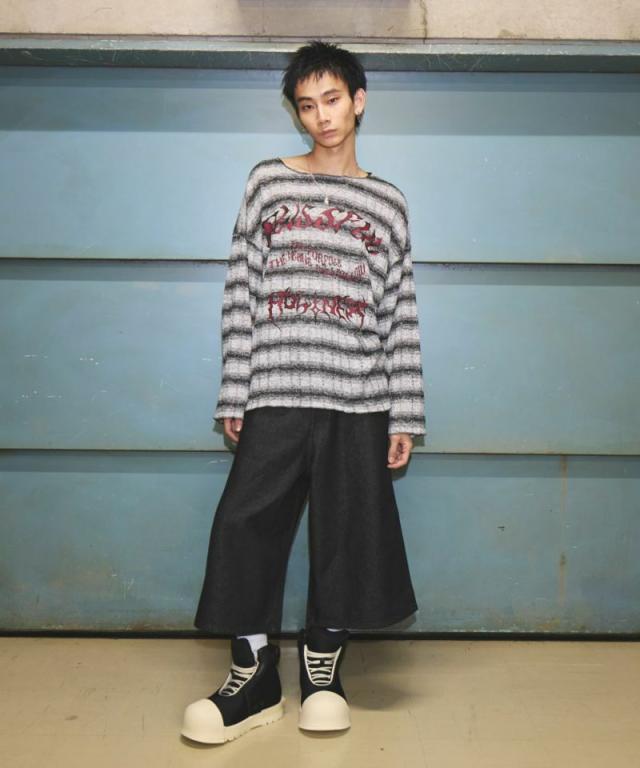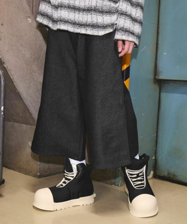 ・裾に向かって大きく広がるワイドシルエットがストリートライクな印象です。
