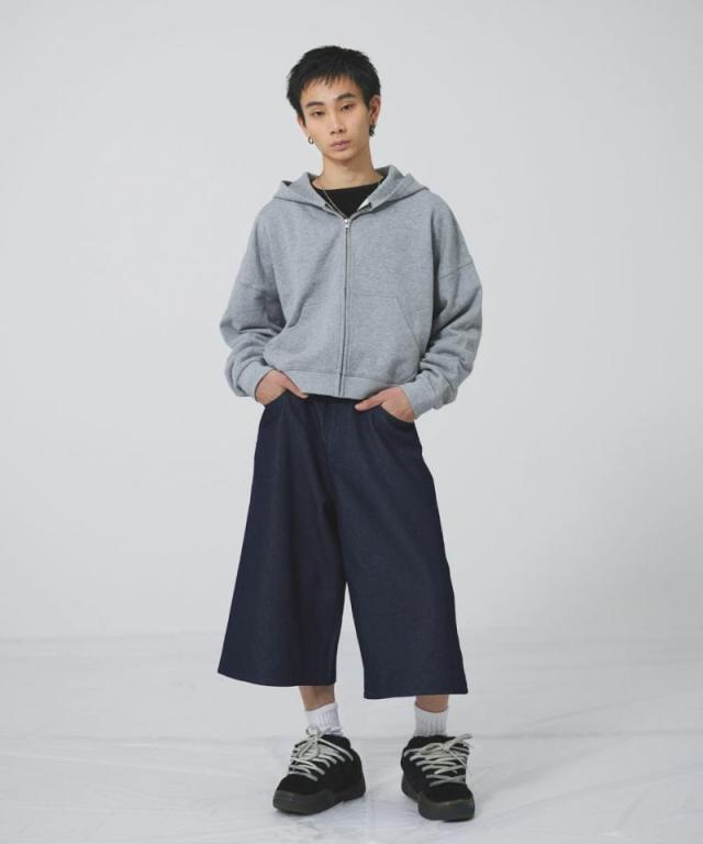 ヴィンテージ加工 ワイドデニムハーフパンツ