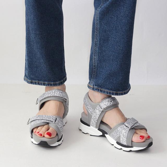 【25春夏新作】厚底グリッターベルクロスポーツサンダル