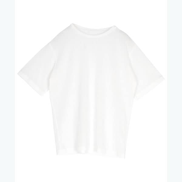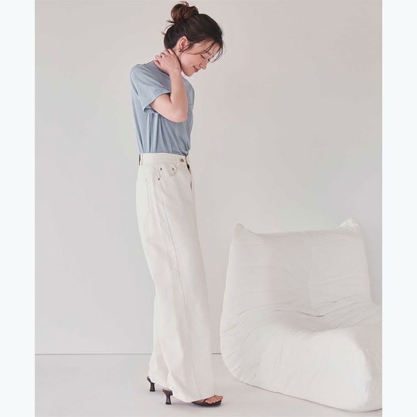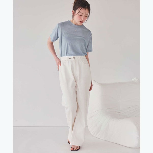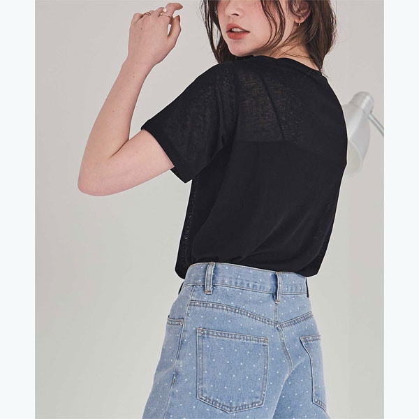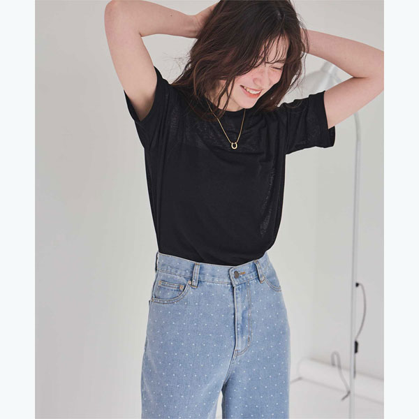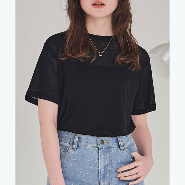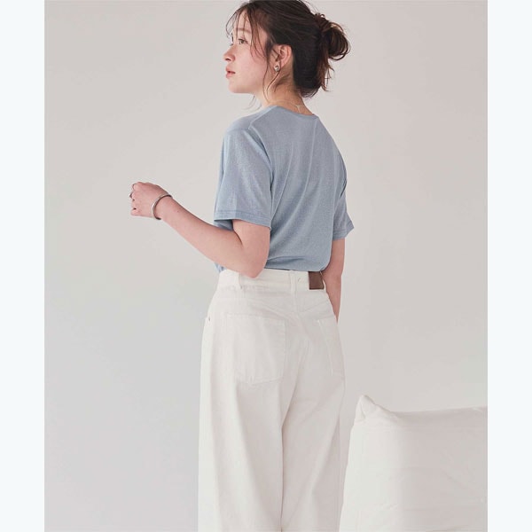 ・襟ぐりは細めの切り替えに仕上げ、カジュアルすぎず女性らしいTシャツシルエットに仕上げました